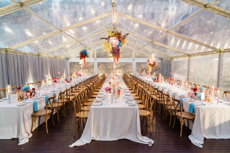 Outdoors weddings under the stars are the best! Have a backup clear marquee on standby if unsure.