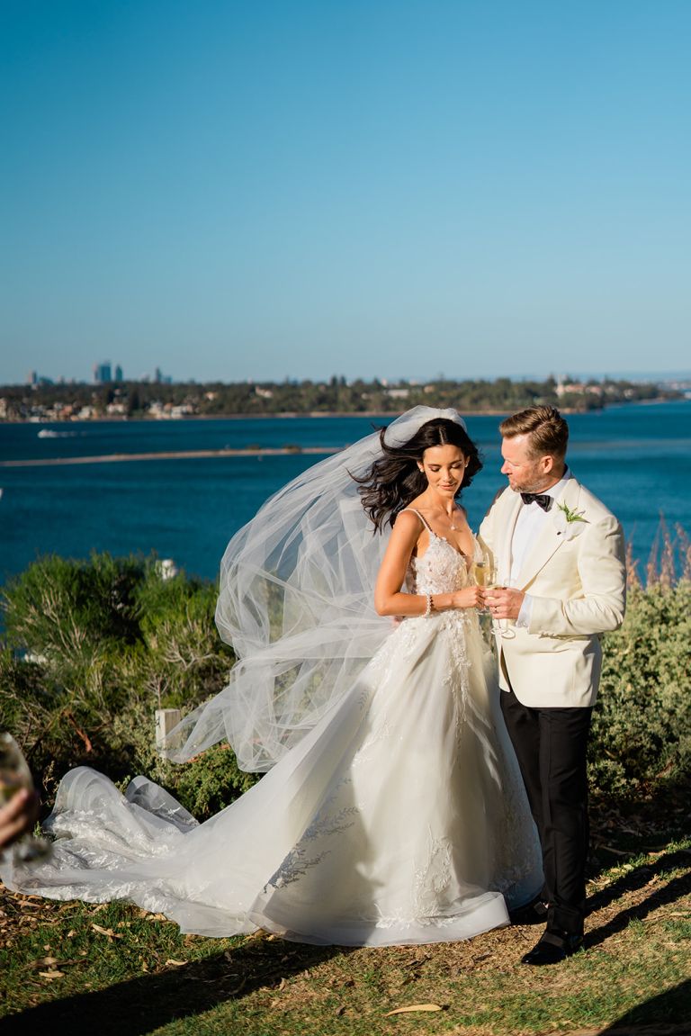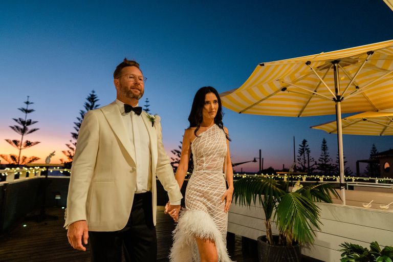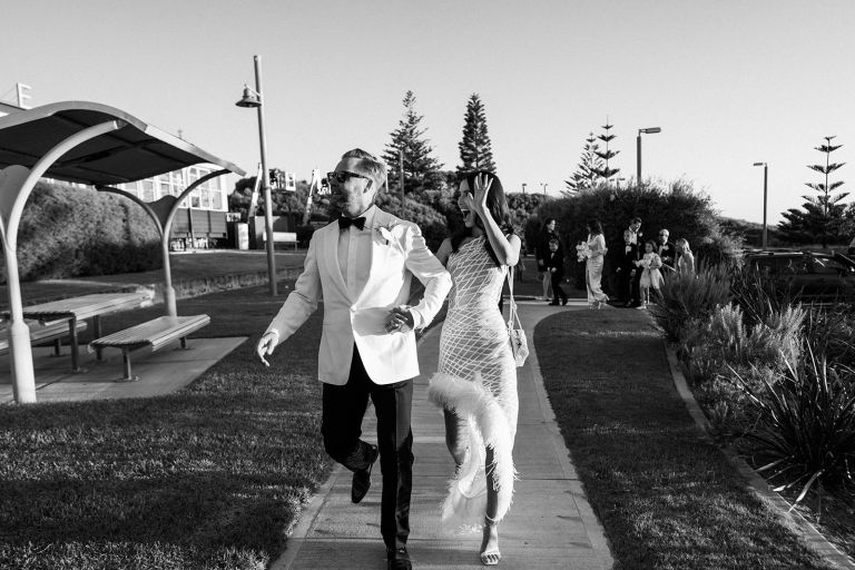 This stunning wedding took place at The Shorehouse in Swanbourne, with uninterrupted views of the sun setting over the ocean. Lucille and Jeff made their entrance to the sound of a live violinist playing Florence and The Machine.