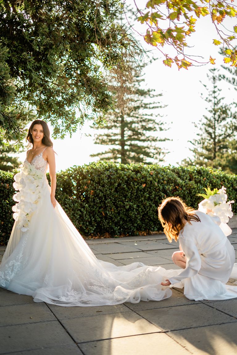 The talented team at Popup Planning Co styled both the ceremony and reception with effortless elegance, complemented by muted, romantic florals by Poppy’s Flowers. Beauty by the legends The Pretty Parlour and Francesca Poggi Makeup, while Lucille’s whimsical gown was sourced from Luv Bridal. A stunning cake by Pink Orchard Cakes took centre stage between the long tables and was one of the most incredible creations I’ve ever seen!